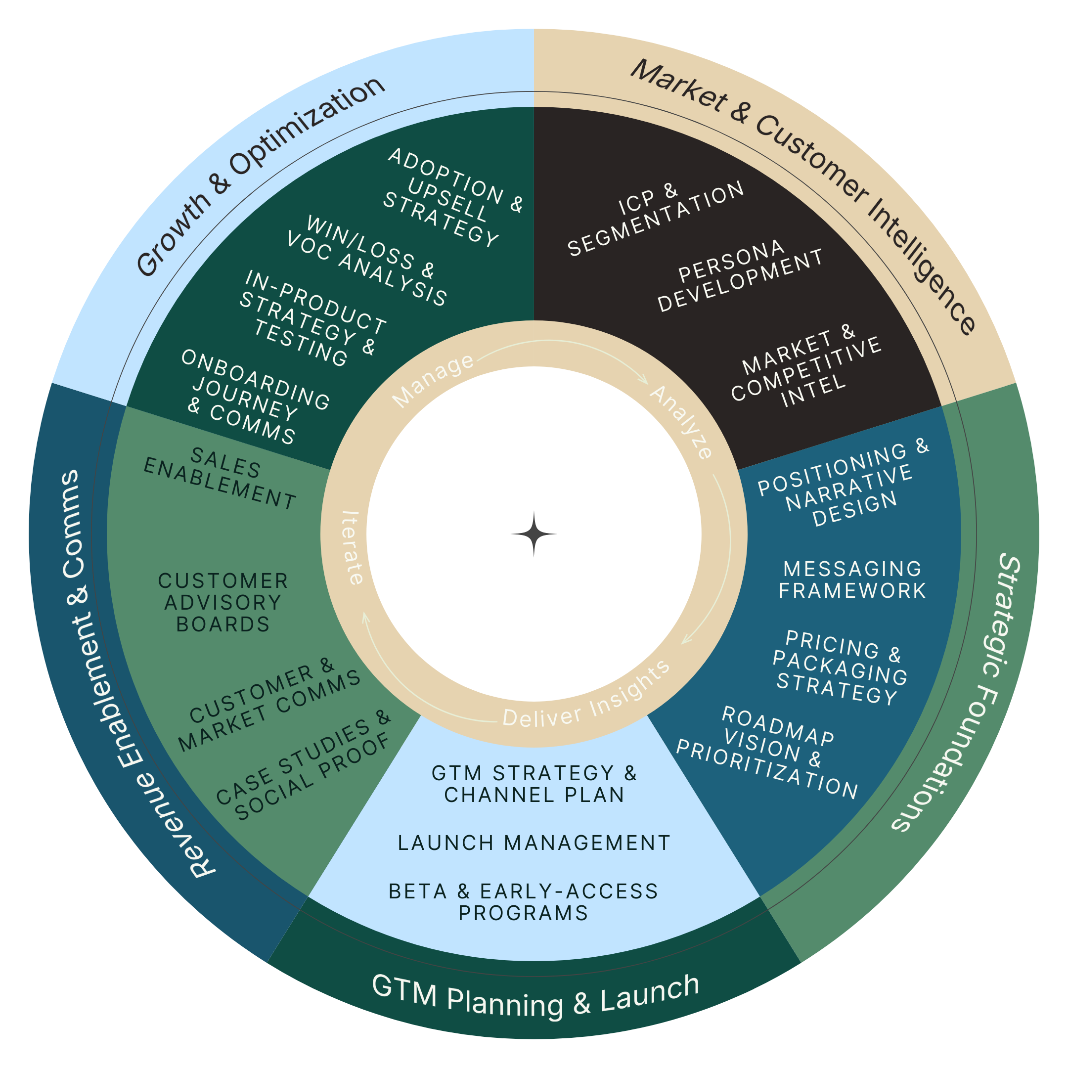 Iterate – Project reviews start at Growth & Optimization findings, then feed right back into Market Intelligence—keeping the loop alive.